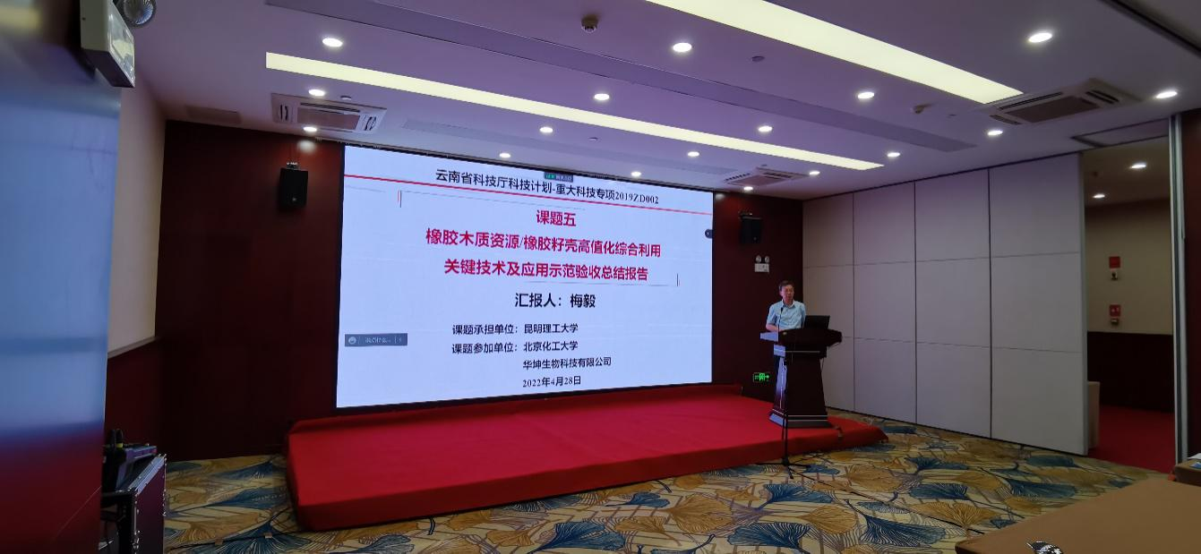 为该重大科技专项承担单位,北京化工大学校长谭天伟院士为项目负责人,云南省磷化工节能与新材料重点实验室主任梅毅教授作为项目第二负责人参与主持项目工作,北京化工大学、华坤生物科技有限责任公司、云南天然橡胶产业集团西双版纳景阳有限公司、云南省热带作物科学研究所为参与单位。出席结题会的有评审组专家、各课题负责人、项目组成员、项目管理人员等20余人。