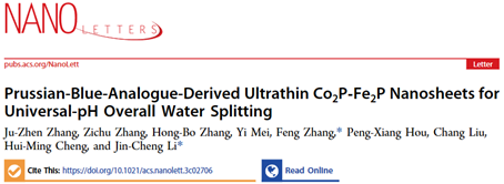 上述研究以“Prussian-Blue-Analogue-Derived Ultrathin Co2P-Fe2P Nanosheets for pH-Universal Overall Water Splitting”为题,发表在美国化学会纳米材料领域权威期刊《Nano Letters》上。论文的第一作者为黑料不打烊