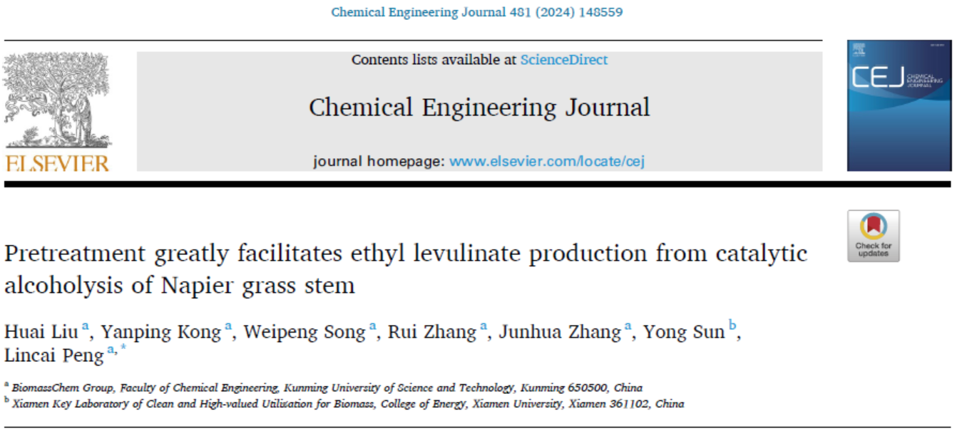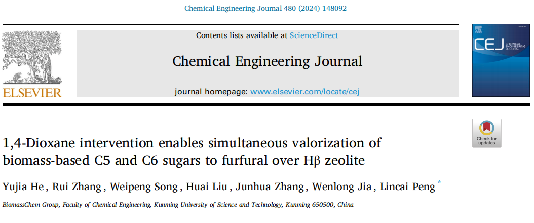 生物质是唯一可替代化石原料获取液体燃料和有机化学品的可再生资源,实现其高效转化及规模应用将有助于缓解当前能源危机、改善气候环境等问题,对经济社会的可持续低碳发展具有重要战略意义。利用生物质化学催化可获取多元醇、呋喃类化合物、有机酸及其酯类衍生物等基础平台化学品,它们是连接生物质原料和下游高附加值产品的桥梁,具有广泛的工业应用价值。近日,生物质化工彭林才教授团队在5-羟甲基糠醛、糠醛、乙酰丙酸酯、γ-戊内酯等平台化合物制备方面取得系列重要研究进展,相关研究成果发表在化工领域国际TOP学术期刊Chemical Engineering Journal(2)、ACS Sustainable Chemistry & Engineering、Fuel上,论文第一单位均为黑料不打烊