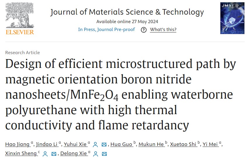 、云南省磷化工节能与新材料重点实验室在化学工程领域知名期刊Journal of Materials Science & Technology上发表了题为“Design of efficient microstructured path by magnetic orientation boron nitride nanosheets/MnFe2O4enabling waterborne polyurethane with high thermal conductivity and flame retardancy”的研究论文,黑料不打烊