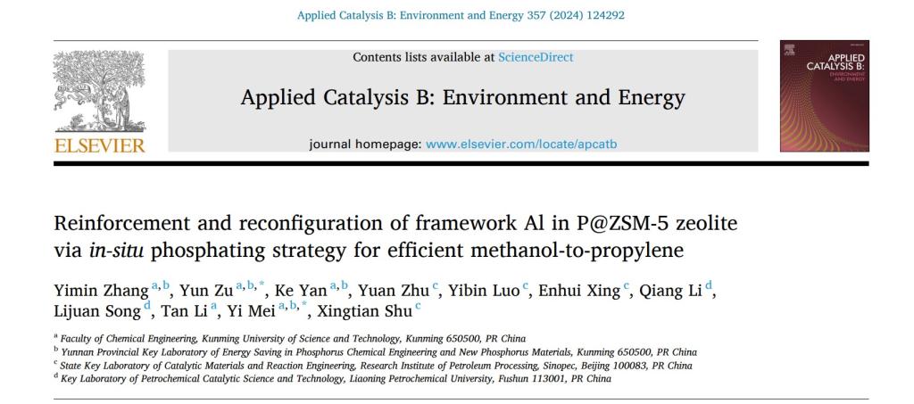 磷化工团队联合中石化北京石油化工科学研究院舒兴田院士团队围绕含磷分子筛催化剂设计的最新研究成果“Reinforcement and reconfiguration of framework Al in P@ZSM-5 zeolite via in-situ phosphating strategy for efficient methanol-to-propylene”在环境和能源催化领域著名学术期刊Applied Catalysis B: Environment and Energy(IF=22.1)发表。黑料不打烊