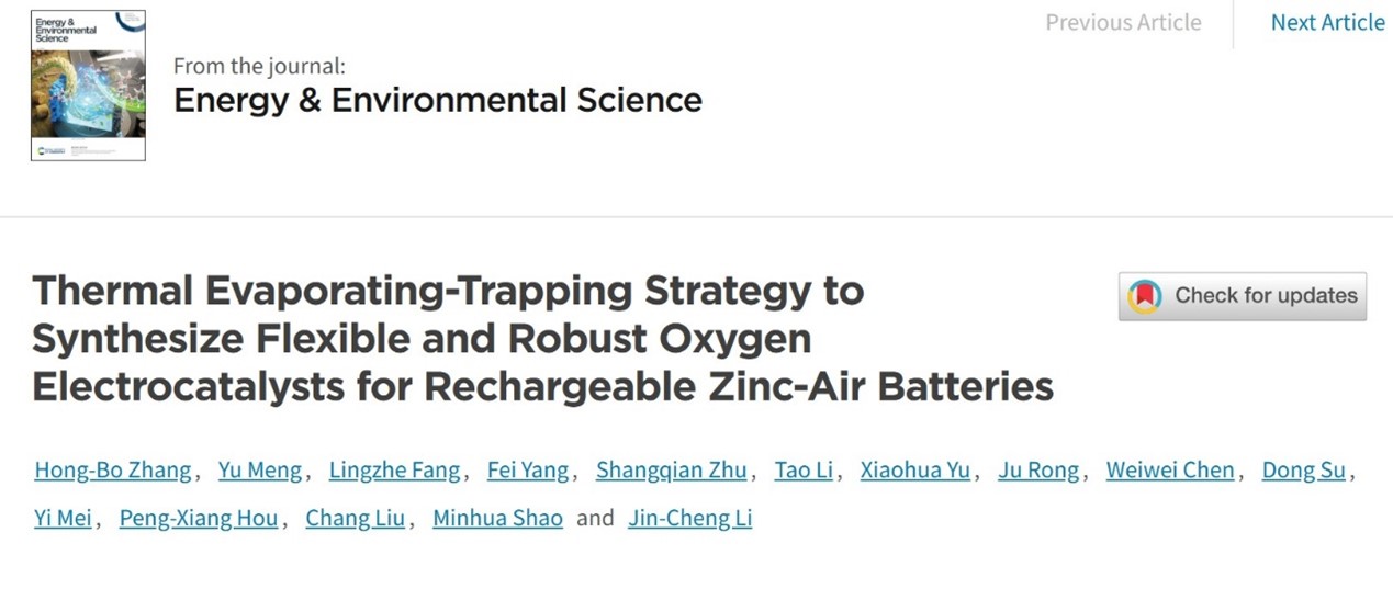 近日,黑料不打烊 李金成副教授和梅毅教授联合多家国内外单位,在能源领域顶级期刊《Energy & Environmental Science》上发表了题为“Thermal Evaporating-Trapping Strategy to Synthesize Flexible and Robust Oxygen Electrocatalysts for Rechargeable Zinc-Air Batteries”的研究论文。