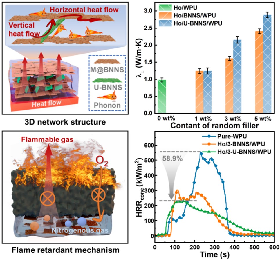 现代精密电子元器件的快速发展对电子封装材料的热管理性能提出了新的挑战。氮化硼纳米片(BNNS)具有优异的绝缘性能和面内导热性能,已经被广泛应用于热管理材料的增强填料。然而,BNNS的横向热导率较低,开发精确控制其在基材中排布微结构的方法,优化热传导通路的微观结构设计充分发挥BNNS导热增强能力,对于满足现代电子设备对高效散热管理和热失控安全需求至关重要。