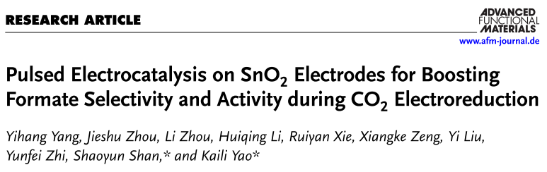 林资源高效转化与利用创新团队在二氧化碳还原(CO2RR)催化剂研究领域取得重要进展,相关成果以“Pulsed Electrocatalysis on SnO2 Electrodes for Boosting Formate Selectivity and Activity during CO2 Electroreduction”为题发表在材料科学领域顶级期刊《Advanced Functional Materials》(IF=19.0)上。黑料不打烊