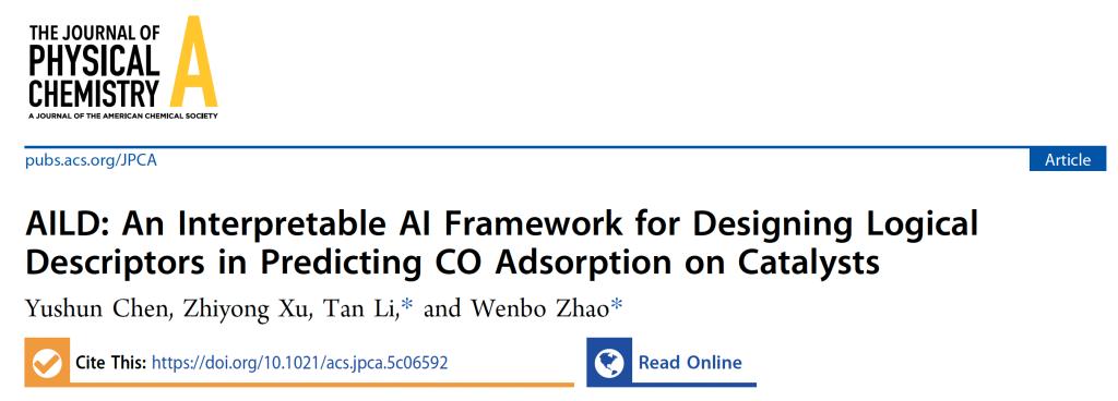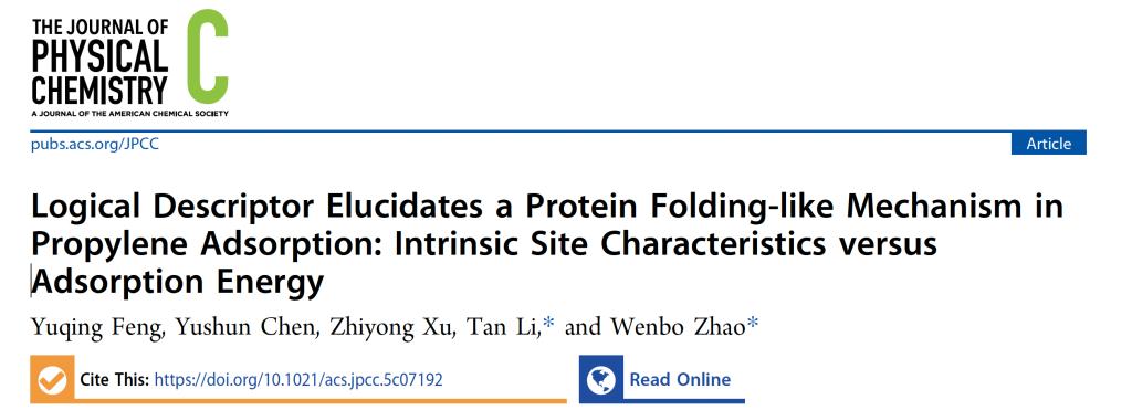 分子分离与催化团队在多相催化剂理性设计及可解释人工智能(AI)领域取得系列进展。相关研究成果以“Logical Descriptor Elucidates a Protein Folding-like Mechanism in Propylene Adsorption: Intrinsic Site Characteristics versus Adsorption Energy”和“AILD: An Interpretable AI Framework for Designing Logical Descriptors in Predicting CO Adsorption on Catalysts”为题,发表于物理化学领域权威期刊《The Journal of Physical Chemistry C》和《The Journal of Physical Chemistry A》。