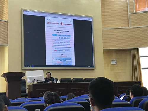 2018年9月20日,化工学院在化工楼报告厅举行“万名党员进党校”教育培训活动,学院邀请了党校的殷国禺老师和纪检监察室主任赵兴河老师对全院党员作专题报告。