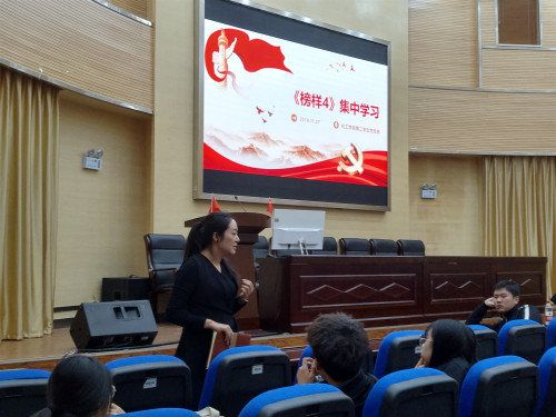 学生第二党支部全体党员在化工楼报告厅100集中观看学习以“不忘初心,牢记使命”为主题的专题片《榜样4》。