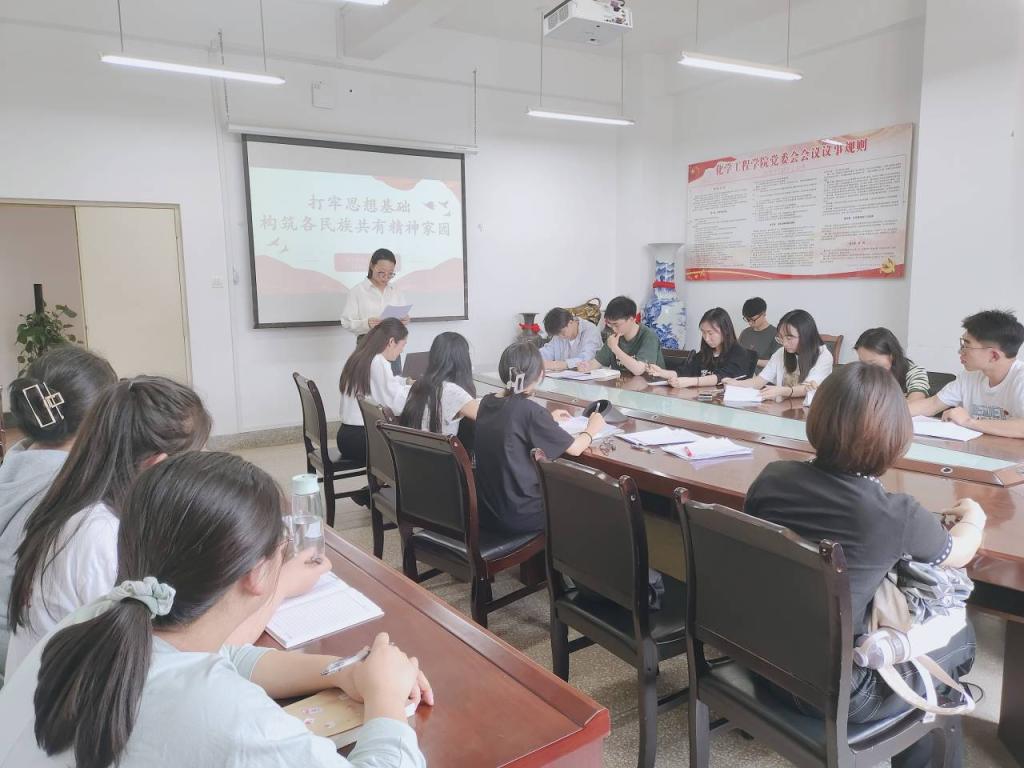 学生第二党支部在化工楼338会议室开展了以“打牢思想基础,构筑各民族共有精神家园”为主题的党日活动,支部全体党员参加活动。