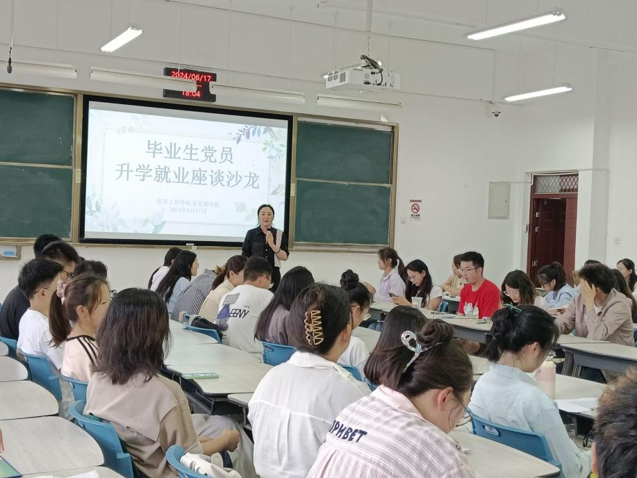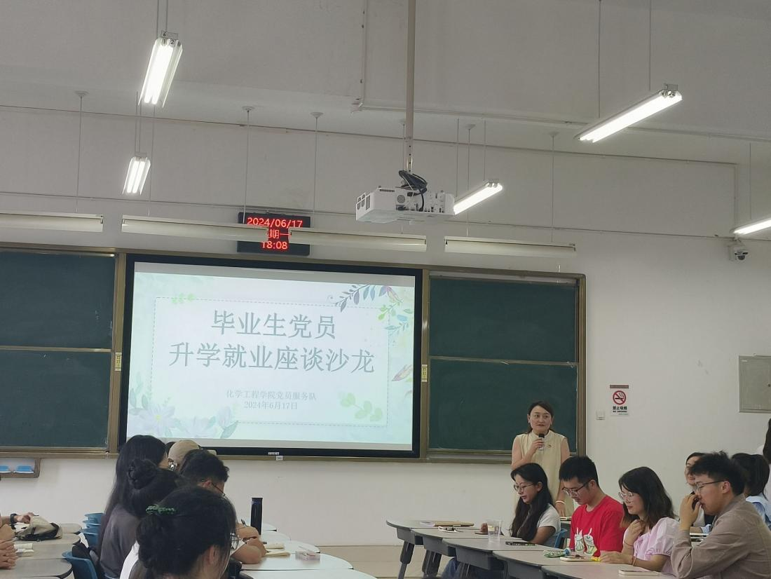 在公教楼举办毕业生党员升学就业沙龙。学院党委副书记宁玲、党员服务队指导老师谢丽芬、辅导员叶廷艳,以及来自学院学生第一、第二党支部的成员,共计90余人参与了本次活动。活动由学院学生党员服务队承办,谢丽芬主持。