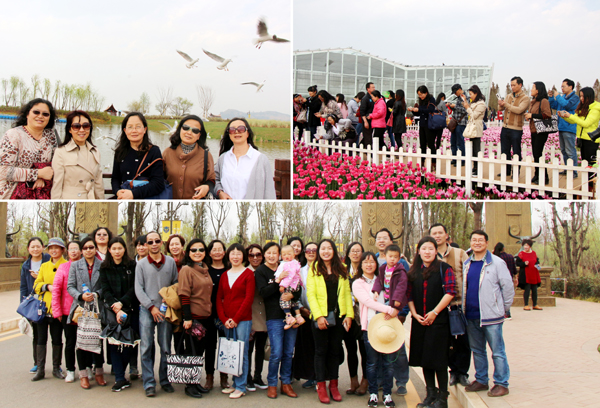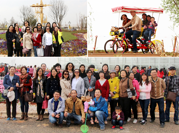 2016年3月10日下午,化工学院组织全院女职工(38人)到呈贡捞鱼河湿地公园踏赏郁金香,共享三八女同胞的节日。湿地公园郁金香品种繁多,规模庞大,色泽艳丽。万千朵红、紫、粉、兰郁金香,骄阳下美丽绽放,大如荷,小如兰,花瓣挺拔,昂首挺立。郁金花边如灯带般将花朵映照得娇艳欲滴,粉的含羞,红的欲滴,紫的娇美。化工女同胞漫步在郁金花海中流连忘返,留下无尽的有郁金香陪伴的节日喜悦,共同畅想未来美好的生活。