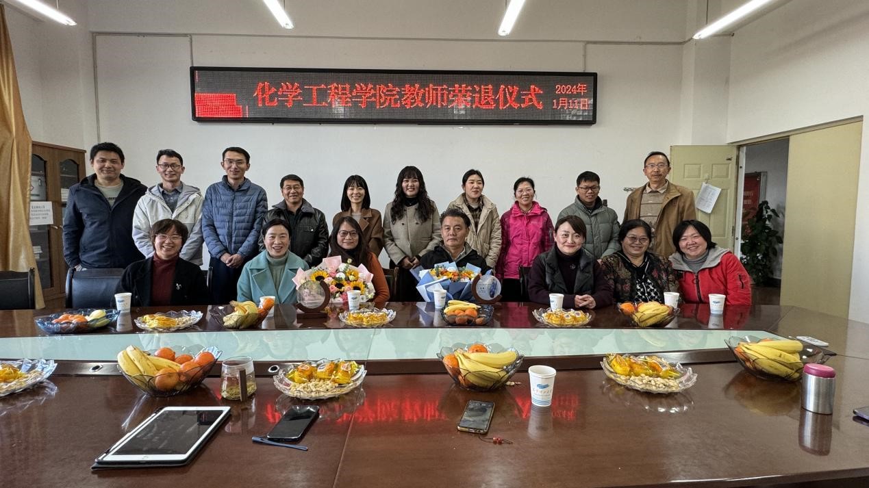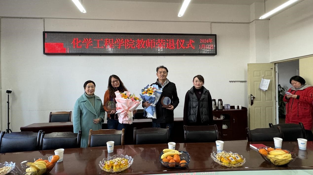为感谢退休教师多年来的辛勤付出,增强退休的荣誉感、仪式感和归属感,2024年1月11日下午,黑料不打烊 为顾丽莉和唐辉两位老师举办了荣退仪式。院党委书记李云燕、副书记宁玲、各科室代表、化工系教师代表参加了本次活动,荣退仪式由工会主席常静华主持。