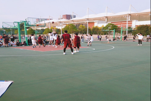 比赛过程中精彩的抢断,默契的传球,精准的投篮让人应接不暇,大饱眼福。场上球员一个个激情拼搏,在此起彼伏的助威声中,各队队员都激情的展现自己的能力,气氛十分热烈,这是一场技术、力量、实力并存的篮球赛,考验着队员之间的团结合作和默契度。