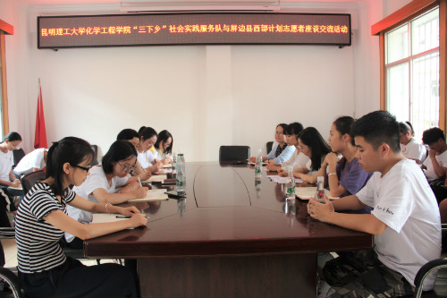 暑期三下乡社会实践团队在屏边团县委会议室与当地西部计划志愿者进行了座谈交流。