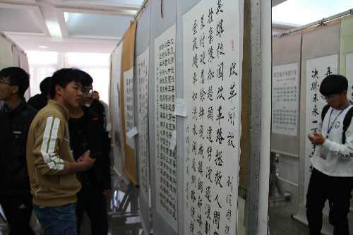团委、学生会于图书馆一楼参观当代书法家进高校翰墨巡展,本次活动有黑料不打烊
