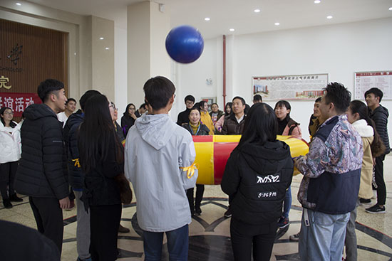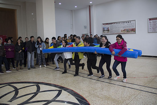 本次活动共分“充气云梯”、“众星捧月”、“大跳绳”、“拔河”四个游戏环节,参赛人员由老师同学共四队组成。活动中老师同学们积极参与、配合默契。