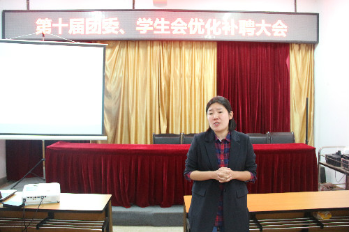 第十届团委、学生会在化工楼负一楼报告厅召开了优化补聘大会。院团委书记李凯宇老师、第十届团学干部和参与补聘的同学共同参会,会议由院团委副书记彭芳主持。