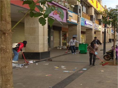 门口聚贤街举办了“学习雷锋,清扫大街,共建文明春城”主题活动,号召更多的人爱护环境、文明出行,化工院青年志愿者协会全体成员积极参加。