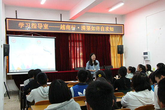 2017年10月26日13:30,学习指导室海外交流专场分享会在化工楼负一楼报告厅拉开序幕。国际学院陈美芝老师、暑期越南行分队长张英、队员罗晓菲同学为大家献上了一场激情饱满的分享盛宴。