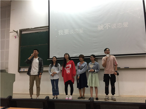 随后是以清除和肃清邪恶和非正义事物为宗旨的廓清环宇辩论社的招新宣讲,他们以特别的辩论方式呈现了自己关于“大学生恋爱”的不同观点,在引发全场的阵阵喝彩的同时也引起了大家对此话题的思考。