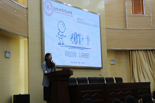 学院学工办主任袁敬老师悉心地为同学们进行了生活指导,不仅为同学们介绍了的昆工良好的校园环境,也提出开放式的大学生活需要自主管理的意识,只有自己管理好自己,才能拥有多姿多彩的大学生活。