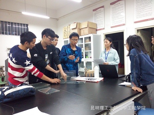 在学工办李覃老师的带领下,工作人员与2017年度助研子项目的小组预约了检查时间和检查地点,现场请小组介绍他们的项目开展情况,并结合所提交的材料,根据预期成果,汇报实验进展,就遇到的困难及问题进行了沟通。在检查过程中,很多小组向工作人员展示了他们取得的一些成果,各小组积极践行“致知力行”的昆工精神,紧张有序地开展实验,实验完成率都在20%以上,实验期间展示了良好的风貌。