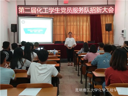 第二届学生党员服务队招新大会在化工楼报告厅顺利举办。党员服务队的指导老师金雯老师出席了本次招新大会,同时参加本次招新大会的还有第一届学生党员服务队的全体成员,以及2016级部分学生。