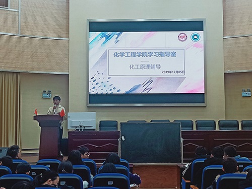 勤工励志互助会勤学社主办的学习指导室之化工原理辅导在化工楼100报告厅举行,本次活动由勤学社孔鑫鑫同学主持。