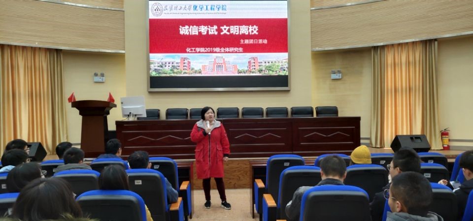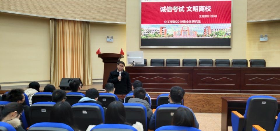 于化工楼100报告厅举办了2019级研究生“诚信考试,文明离校”的主题团日活动。本次主题团日活动邀请了何洁老师、钱伟民老师为同学们作报告,2019级全体研究生参加。