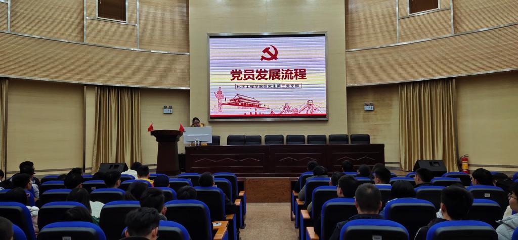 首先,由研究生第三党支部书记江梦同志为入党积极分子及入党申请人讲解党员发展流程。对入党程序中每个阶段所形成的材料,需要牢记的日期都进行了详细讲解。