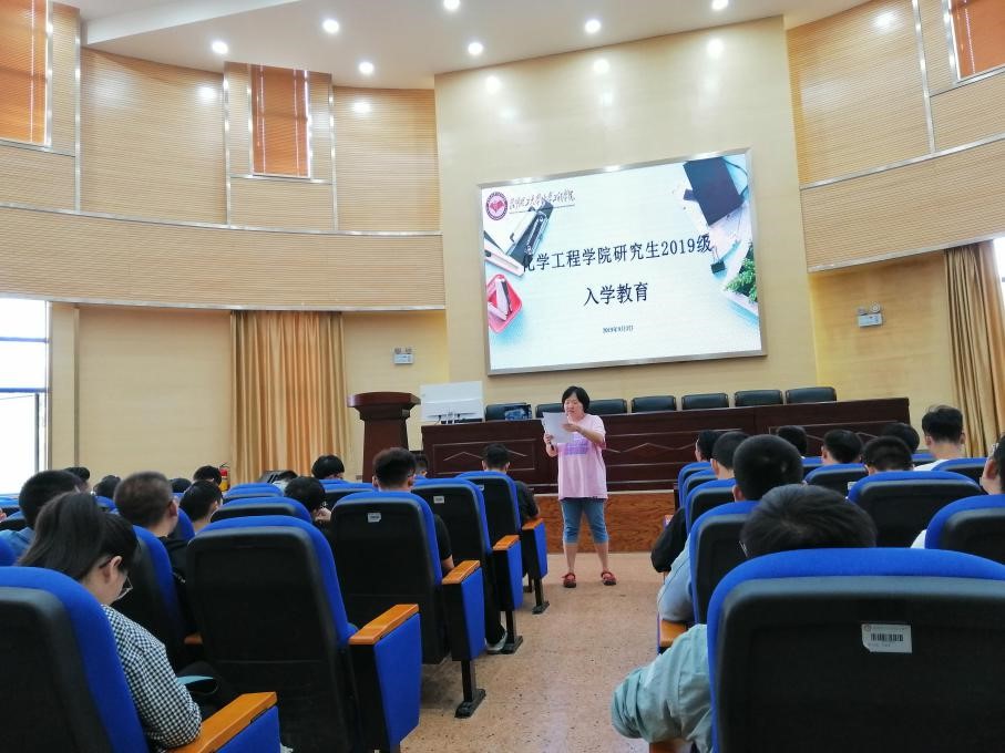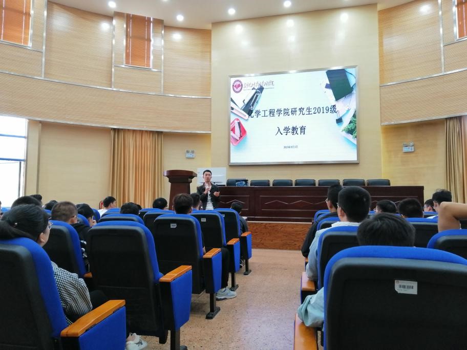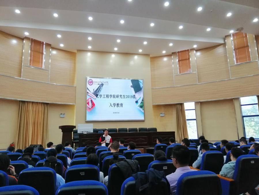 2019级研究生入学教育在化工楼100报告厅举行。本次会议有钱伟民、何洁两位老师,学生党支部书记赵辉等三位同志,研究生会主席余杨同学以及各部门部长出席,2019级全体研究生参加,会议由何洁老师主持。