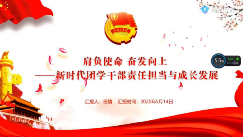 田婧老师主要从新时代团学组织和团学干部的责任、使命,新时代团学干部的成长和发展,团学组织、团学干部的奖项评选三个方面开展线上主题团课。首先,田婧老师结合“党有号召,团有行动”、“共青团是党的助手和后备军”向大家说明了团学组织和团学干部的工作要抓住三个根本性问题:把培养社会主义建设者和接班人作为根本任务;把巩固和扩大党执行的青年群众基础作为政治责任;把围绕中心、服务大局作为工作主线。紧接着,田婧老师带领大家讨论:疫情期间看到了什么?感受到了什么?做了什么?指出:党员、团员在本次抗疫中的先锋模范作用尤为突出,新时代的青年已然能够担负起时代赋予的责任和使命。同时,田婧老师结合共青团的“从2到6”说明共青团与新媒体的关系:不是共青团的新媒体工作,而是新媒体的共青团工作。其次,田婧老师通过展示在学校各个地方、各种活动中团学干部的身影,指出团学干部应该做到:召之即来,来之即战,战无不胜。同时,田婧老师对新时代团学干部的成长和发展提出了三点建议:永远选择学习,给生命高质量的浇灌;永远脚踏实地,无条件尊敬你的职业;强健体魄,永远保持青春活力。接着,田婧老师在介绍团学组织、团学干部的奖项评选中指出:用研究的精神面对团学工作中的每一项要求。最后,田婧老师对本次主题团课做出总结:团学干部要在一次一次工作磨练中,对一项一项工作细节认真思考中不断发展、成长。人生没有白走的路,每一步都算数,以青春之名,用奋斗发声,走好人生的每一步!至此,本次主题团课圆满结束。
