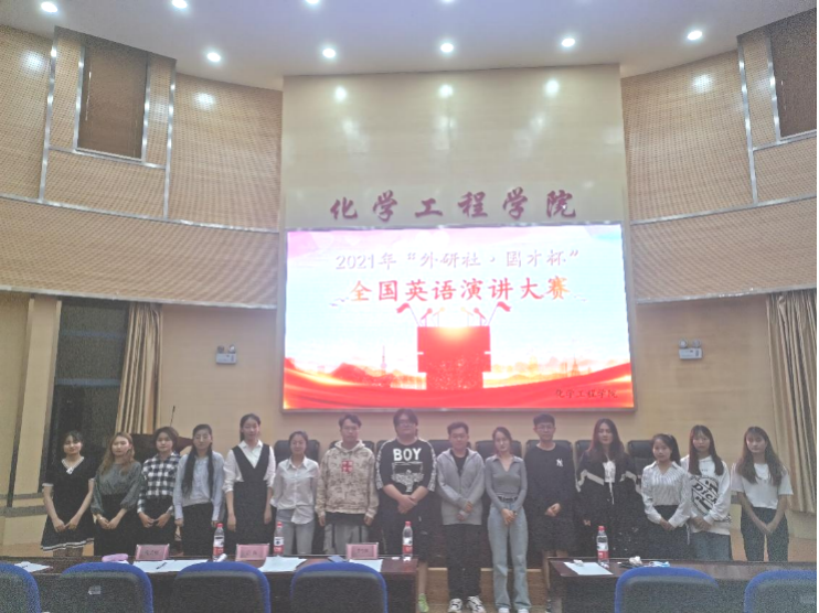 研究生会主办,外文学院王娜娜担任主持人,张芸丽、唐辉和罗怡枫担任评委,九位参赛选手和部分学生观众共同参与。