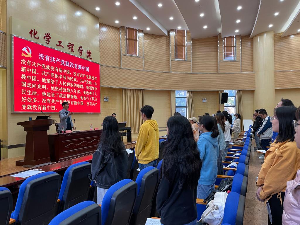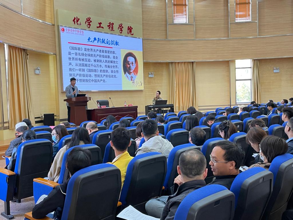 于化工楼100报告厅开展了第十一期“青年马克思主义者培养工程”青卓班第二次专题培训。云南农业大学经济管理学院正处级组织员杨建荣老师担任主讲嘉宾,云南艺术学院武文斌老师担任伴奏。化工院党委书记李云燕老师、党委副书记宁玲老师、院团委书记李凯宇老师与120余名学生党员、团学骨干一同参与了此次活动。