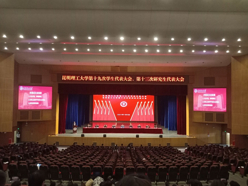 第十三次研究生代表大会在红土会堂顺利召开。化工学院5名研究生代表参与了本次大会。本次大会主要任务旨在要高举习近平新时代中国特色社会主义思想伟大旗帜,以习近平总书记关于青年工作的重要思想和关于教育的重要论述及考察云南重要讲话精神为指导,努力开创我校研究生会工作的新局面,为推进学校中心工作和实现中华民族伟大复兴“中国梦”的奋斗目标贡献青春力量。