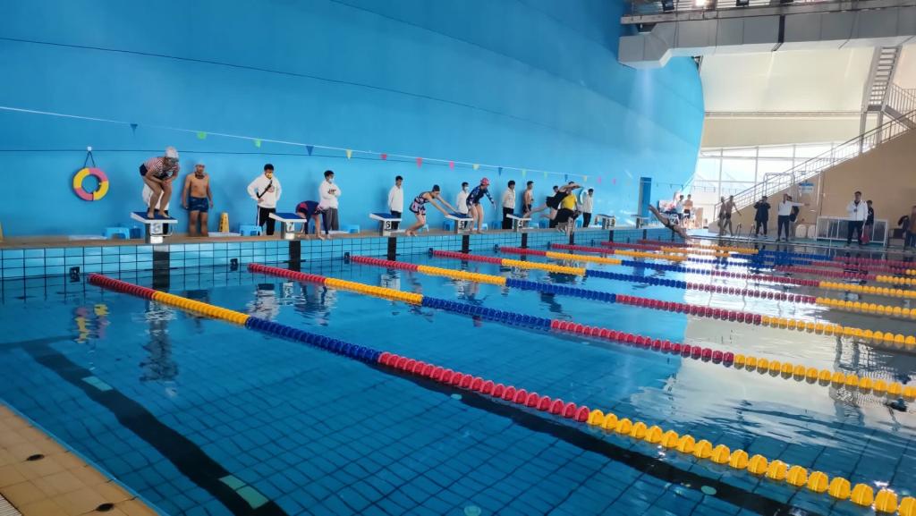 学生游泳比赛。