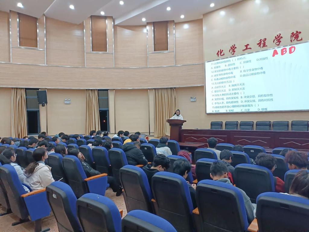 此次安全知识竞赛分为三个环节,首先是答题部分,题型共分三类,分别为必答单选题、多选题、抢答题;第二个环节是播放安全宣传视频;最后一个环节是宣布获奖班级,经过激烈的角逐,油运211班荣获一等奖、化工214班和化工202班荣获二等奖、化工211班、化工203班和装控201班荣获三等奖。