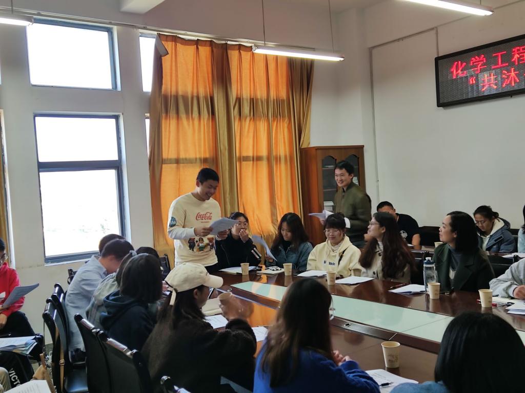 与外国语言文化学院共同开展以“共沐书香”为主题的读书分享会,化学工程党委副书记宁玲、辅导员田世垚,外国语言文化学院团委书记李雪瑜、马倩博士、石洋老师、潘霞老师及三十余名读书会爱好者共同参与了活动。本次读书会由石洋老师为大家分享海明威的短片小说《白象似的群山》。