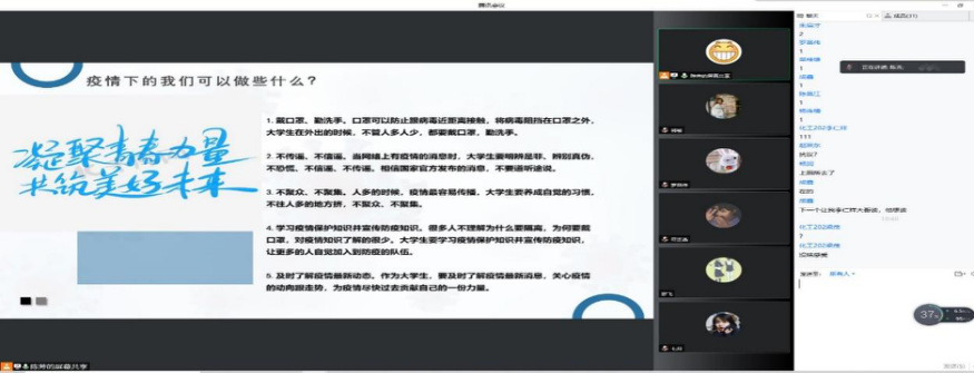 第一,开展线上疫情防控专项学习活动。装控201、轻化201等团支部通过学习学校关于疫情防控的各项要求,并引导团员青年们严格遵守学校关于疫情防控的各项规定,服从学校疫情防控大局,主动配合学校做好疫情期间校园的各项管控措施,加强自我约束,做到不造谣、不信谣、不传谣、不恐谣。