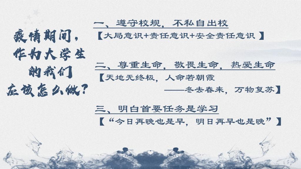 通过“凝聚青春正能量 同心抗疫勇担当”主题团日活动的开展,加强了同学们对于疫情防控相关政策和措施的了解,引导团员青年在疫情防控期间继续提升自我。习近平总书记曾说:“坚决克服麻痹思想、厌战情绪、侥幸心理、松懈心态,守住来之不易的防控成果”,我们也号召全体团员青年克服麻痹思想、厌战情绪、侥幸心理、松懈心态,听党话,感党恩,跟党走,守住来之不易的防控成果,共同期待病例清零的美丽时刻。