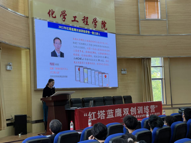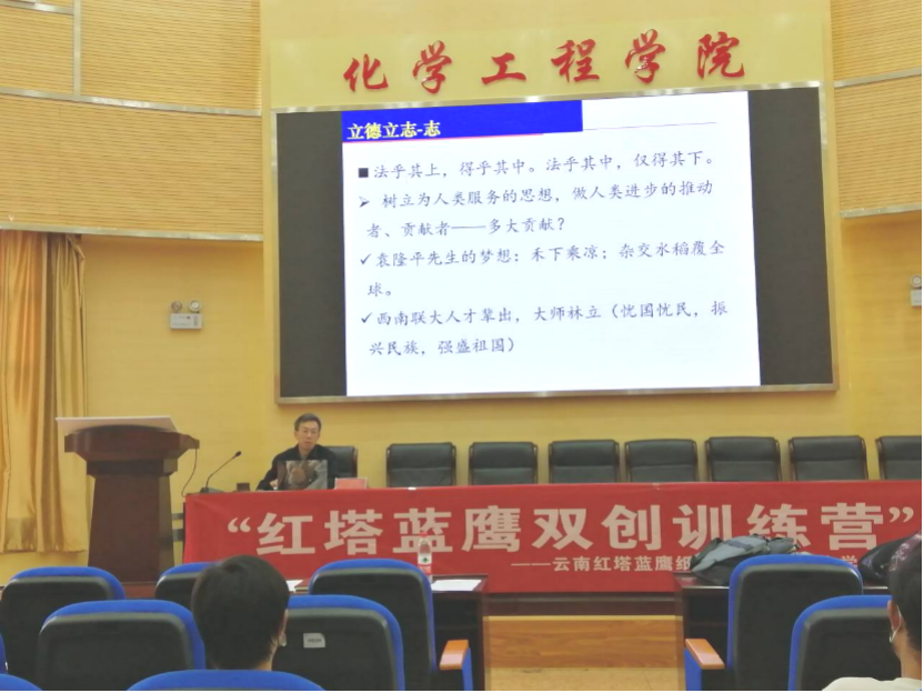2022年4月14日14:30,化工院于化工100报告厅开展了化工院2022年红塔蓝鹰双创训练营第一期主题培训。2022年红塔蓝鹰双创训练营全体营员参与了此次活动,此次培训由梅毅教授担任主讲嘉宾,独到讲解了《科学精神与实践》。