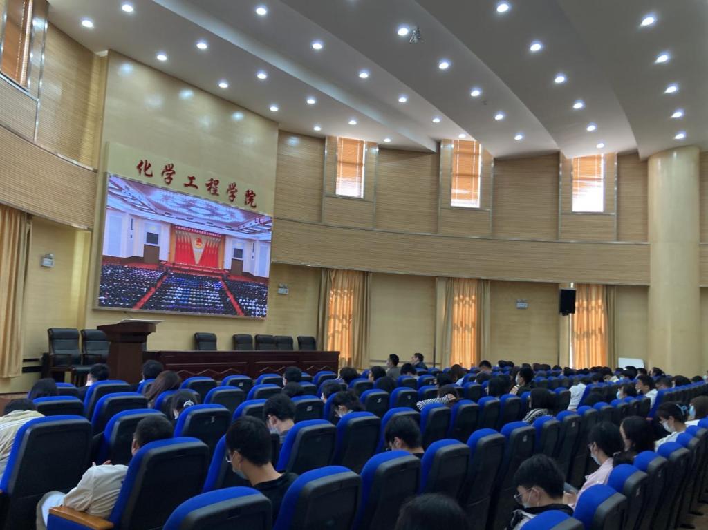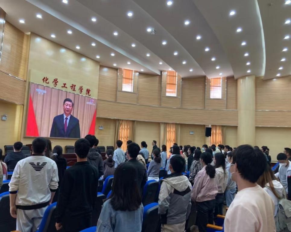 在化工楼100报告厅组织了优秀团员青年收听收看“庆祝中国共产主义青年团成立100周年”大会。