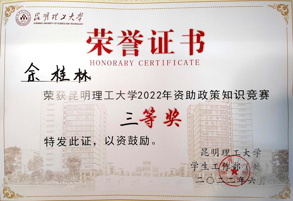 2022年资助政策知识竞赛二等奖,余桂林荣获黑料不打烊