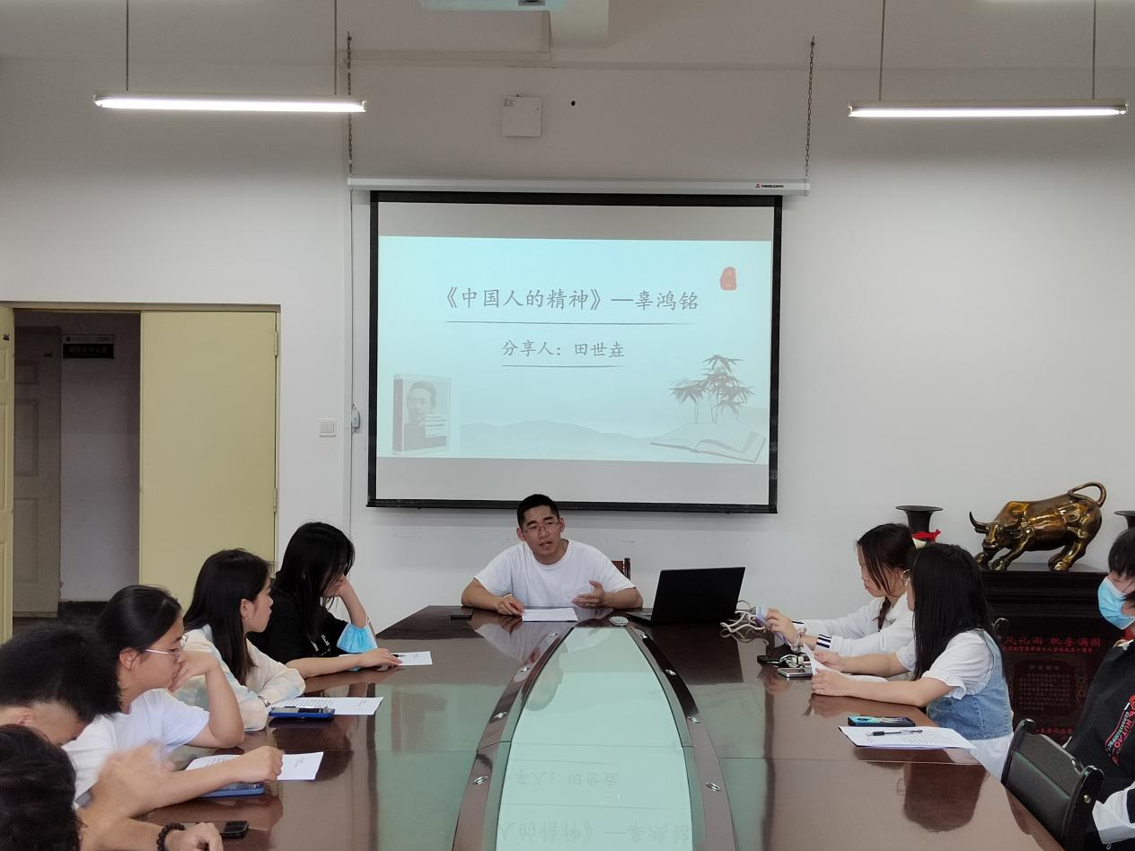 田世垚老师分享辜鸿铭先生的《中国人的精神》,学院30余名读书爱好者参与了活动。。