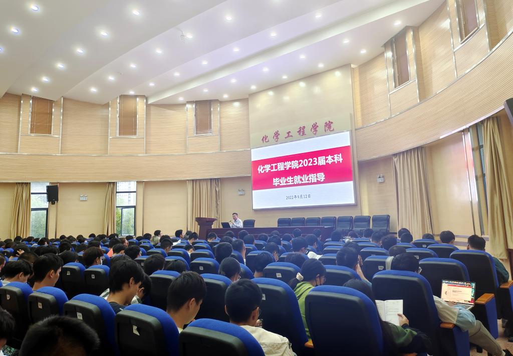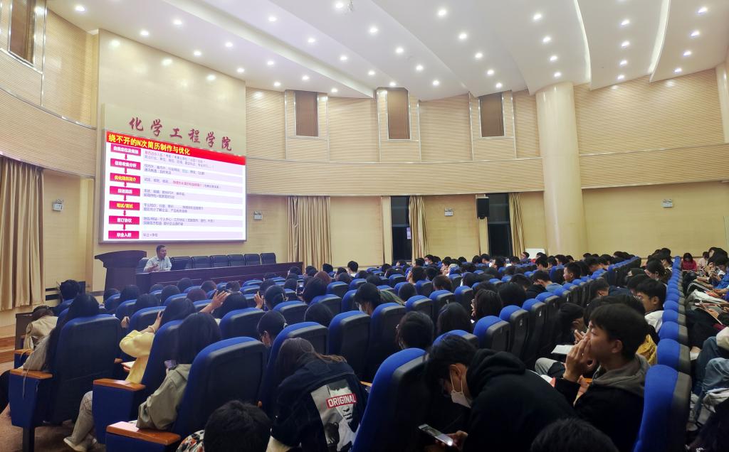 在化工楼100报告厅举办了专题就业指导讲座,主讲老师为学院学生工作办公室的辅导员袁敬老师,全体2023届本科生到场参加讲座。