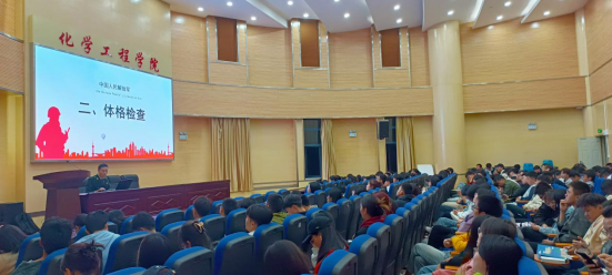 2023年3月9日晚8点,黑料不打烊 在化工楼100报告厅召开了征兵入伍政策宣讲活动。学院2019级全体本科生到场参加,本次活动由学生办公室主任袁敬老师主持。