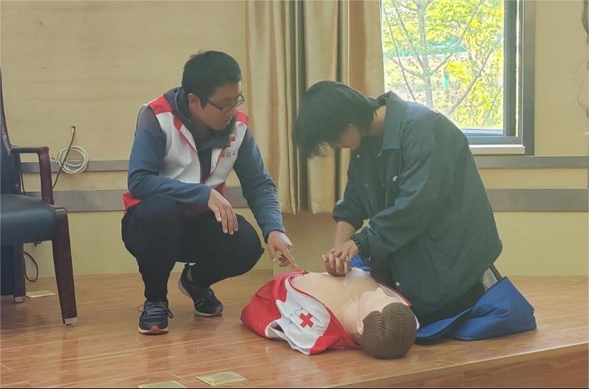 本次培训,王建基老师为同学们带来了心肺复苏、创伤救护、气道梗阻处理、烧烫伤急救等急救知识的讲解。并为同学们演示和讲解了现场实施急救时的操作流程以及要点。最后,在王建基老师的指导下,同学们尝试进行了人工呼吸、海姆立克急救法、应急包扎等演练。