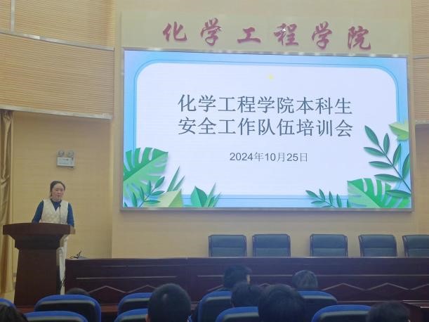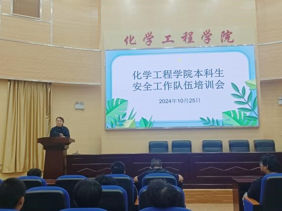 于化工楼100报告厅开展本科生安全工作队伍培训会。本次培训会由学院党委副书记宁玲主讲,辅导员谢丽芬主持,学院全体本科生安全信息员、心理委员以及学生党员服务队队员参加此次培训会。