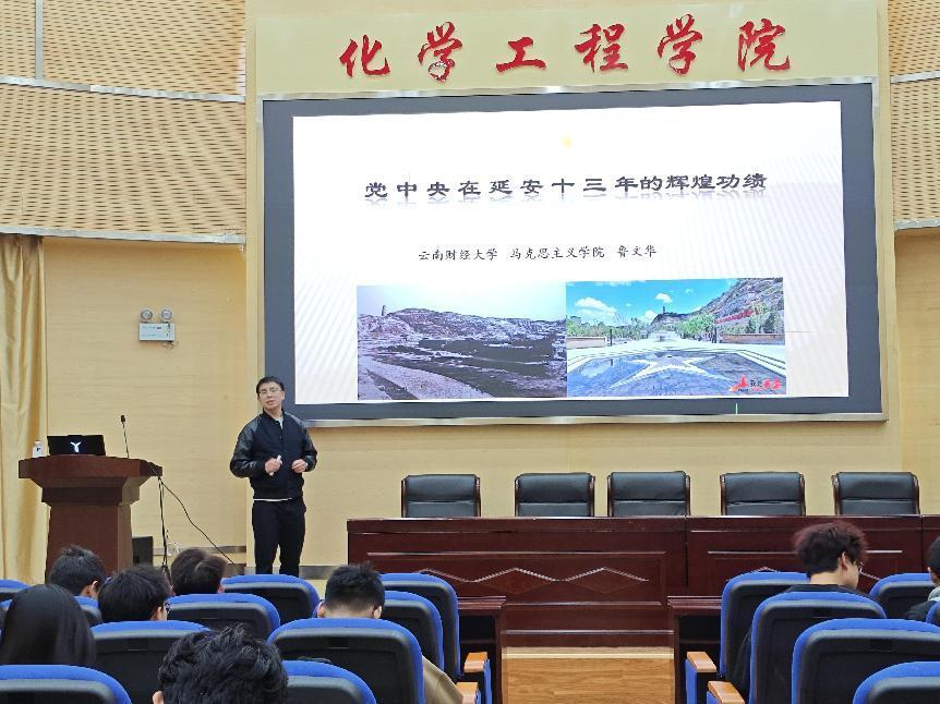 第十三期青年马克思主义者培养工程青卓班学员、入团积极分子代表在化工100参与“党中央在延安十三年的辉煌功绩”专题学习活动。此次学习旨在通过系统梳理革命历史脉络,深化青年学生对中国共产党执政规律的认识,培育兼具历史视野与责任担当的时代新人。本次活动由学院团委组织部成员徐语遥主持,云南财经大学马克思主义学院鲁文华老师担任主讲人。