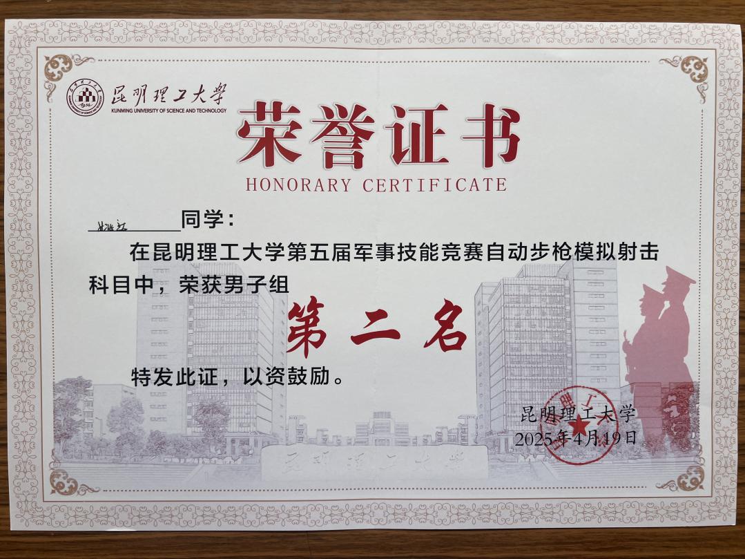 荣获团体优秀奖、姚达荣获自动步枪模拟射击男子组第二名、石旺子荣获三公里越野男子组第三名。