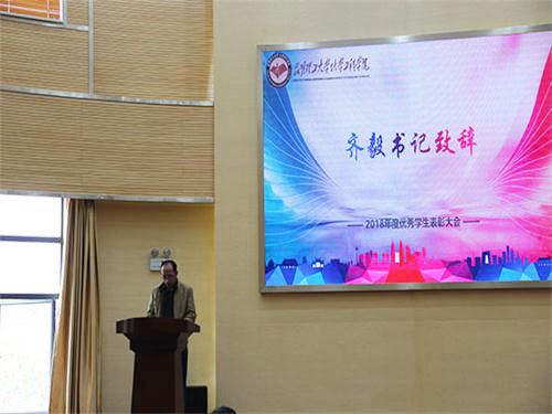 2018年度学生获奖情况,在对获奖同学表示祝贺的同时也对同学们提出了要求,希望同学们掌握扎实的专业知识积极参与科研活动。